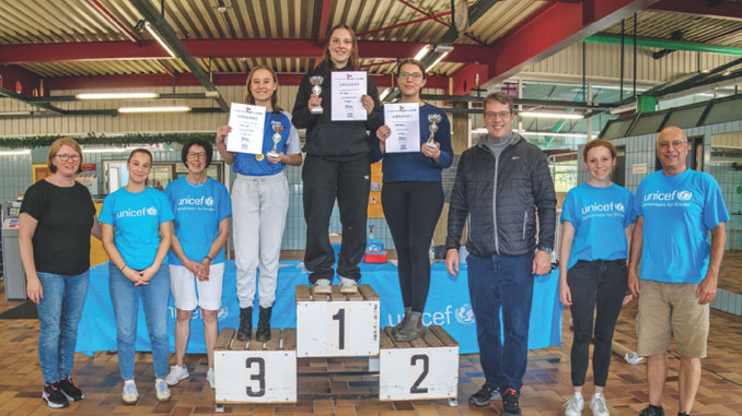 Organisator Bernd Zitzelsberger und Irmgard Künz, Leiterin der UNICEF-Arbeitsgruppe Augsburg, zeigten sich hochzufrieden: „Nach Abzug der Badmiete sind für UNICEF-Projekte rund 8.000 Euro zusammengekommen, deutlich mehr als 2023 mit rund 6.700 Euro.“ Zitzelsberger, der zugleich Abteilungsleiter der Schwimmabteilung des Post SV Augsburg und Trainer ist, leitete während der Veranstaltung mehrmals Wassergewöhnungskurse für Kinder ab vier Jahren: „Alle Kinder hatten sichtlich viel Spaß dabei und manche wollten deshalb auch unbedingt ein zweites Mal teilnehmen. Da habe ich natürlich nicht ‚Nein‘ gesagt.“