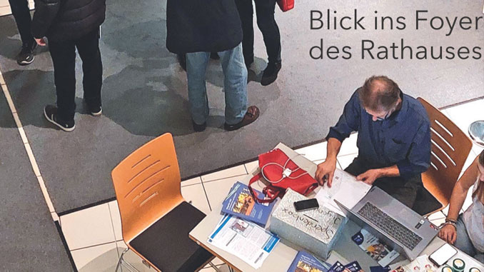 Markus Voh präsentierte in einer Livevorführung die neue und digitalisierte Erstellung eines Personalausweises mittels des „Point-ID“-Systems der Bundesdruckerei, von der Fotografie im Vorraum des Einwohnermeldeamtes über die weitere Bearbeitung durch die Sachbearbeitung.