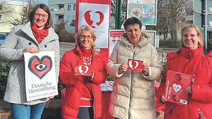 Der „Go Red for Women Day“ (1. Freitag im Februar) ruft bundesweit dazu auf, ein rotes Kleidungsstück oder Accessoire zu tragen, um die Herzgesundheit von Frauen ins öffentliche Bewusstsein zu rücken. Das allein reichte Silke Behrens (Aktionen gegen Einsamkeit) nicht aus. So entstand die Idee eines Infostandes.
