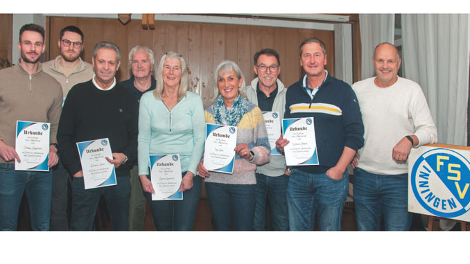 Den Abschluss der Jahreshauptversammlung des Gesamtvereins bildete die Ehrung langjähriger Mitglieder, die – neun für 25, fünf für 40 und zwei für 60 Jahre Mitgliedschaft – eine Urkunde und ein flüssiges Präsent erhielten.